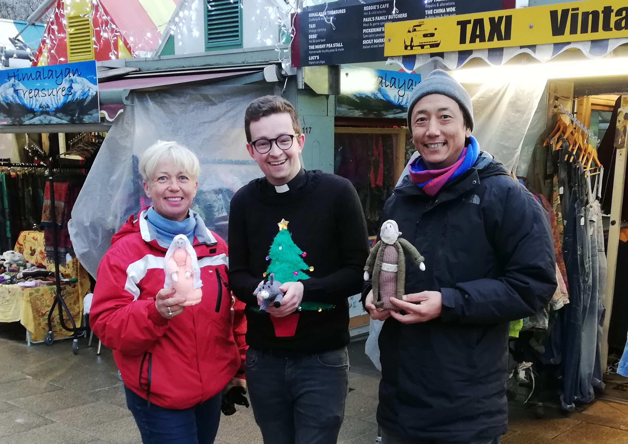 The knitted figures will be travelling around Norwich Market’s stalls, spending each day at a different location in the leadup to the Norwich Market and Retail Carol Service on Tuesday 17 December at 5:15pm. The Revd Graham Kirk-Spriggs explained;